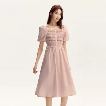 Women's Square Neckline Bubble Sleeves Slim Fit Mid-Length Dress
